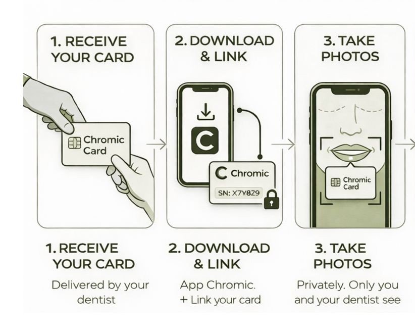 Chromic is a digital platform designed to objectively track dental whitening treatments using AI-based color analysis. It helps you understand how your whitening is progressing over time, with clarity, consistency and transparency.